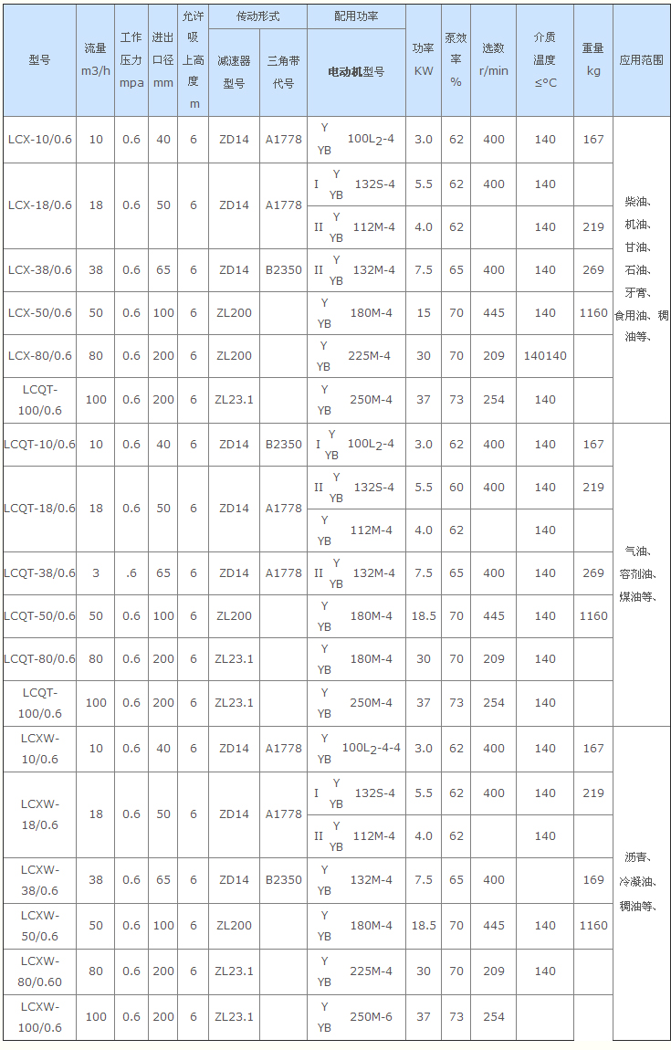 LCX保溫羅茨泵可 用于輸送石油及石油產品(汽油可換銅泵葉)和工廠輸送各種油類和液體。如原油、油漆、潤滑油、玻璃膠、油脂酸、牙膏和淡堿性(肥皂加工)液體等;食品加工可輸送各種液體,如豆漿、酵母、糖稀等。裝卸各種油槽車及油輪等速度快、效率高、使用方便,可以正反轉工作。
