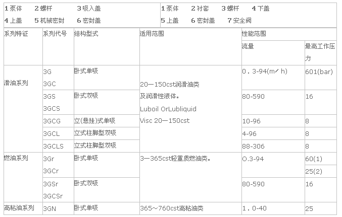 3G螺桿泵性能參數表: