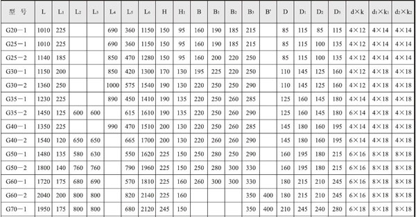 單級,由齒輪變速、電磁調速電機加齒輪變速或無級變速電機加齒輪變速時的性能參數