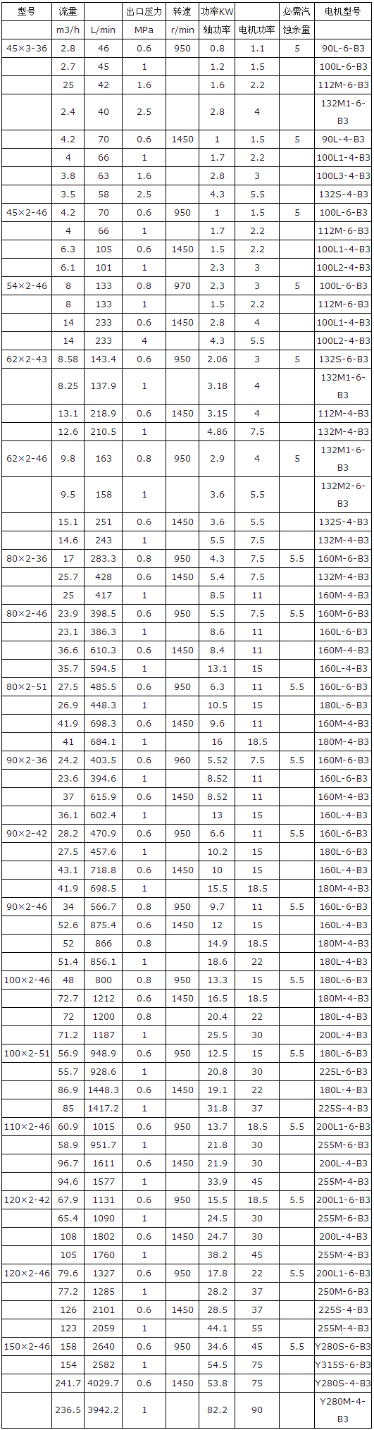 六、3GBW三螺桿瀝青泵常用型號: