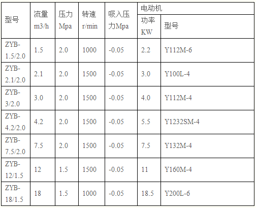 ZYB重油泵參數(shù)如下: